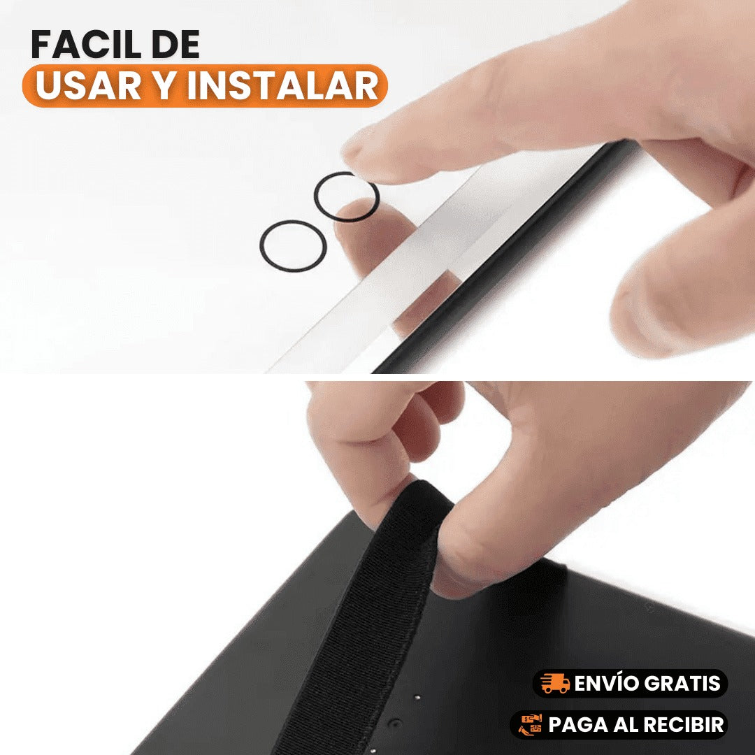 Coloca el espejo en la visera del auto y ajústalo con las bandas elásticas. Su diseño ultrafino no ocupa espacio y queda bien sujeto sin moverse.