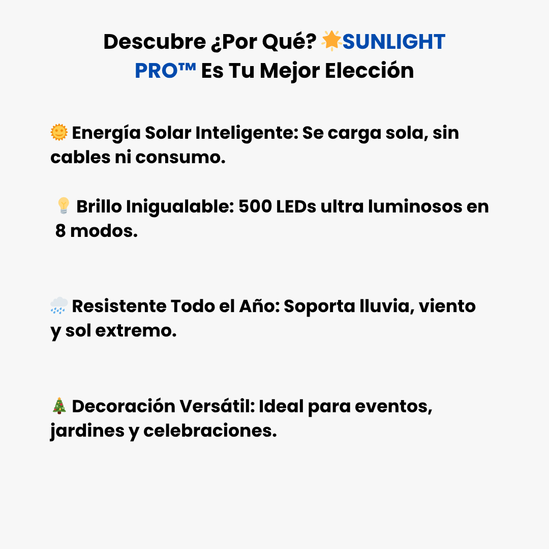 Si valoras la belleza, el ahorro y la practicidad, no busques más. Únete a miles de familias que confían en 🌟SUNLIGHT PRO™ para mantener sus espacios iluminados, cálidos y llenos de magia cada noche.