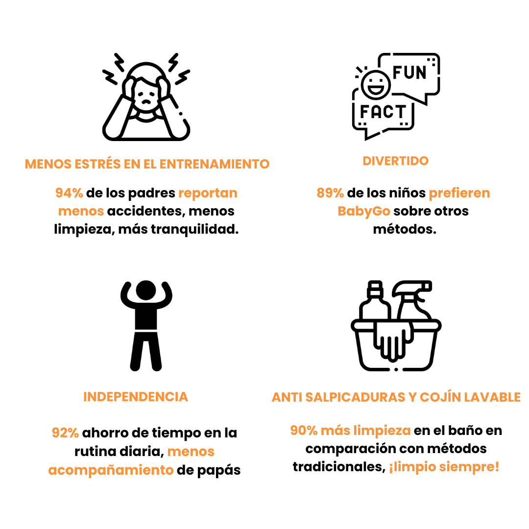 Sabemos que entrenar a tu pequeño para ir al baño puede ser un caos. BABYGO® lo hace más fácil, limpio y seguro, ¡sin estrés ni accidentes!