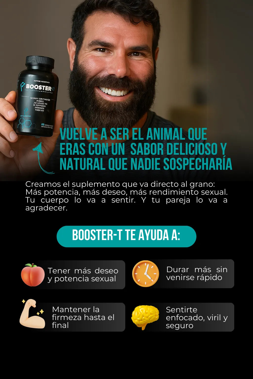 Booster T4™ está formulado para reactivar tu virilidad de forma natural, sin químicos ni riesgos. Miles ya están sintiendo el cambio. ¿Y tú?
