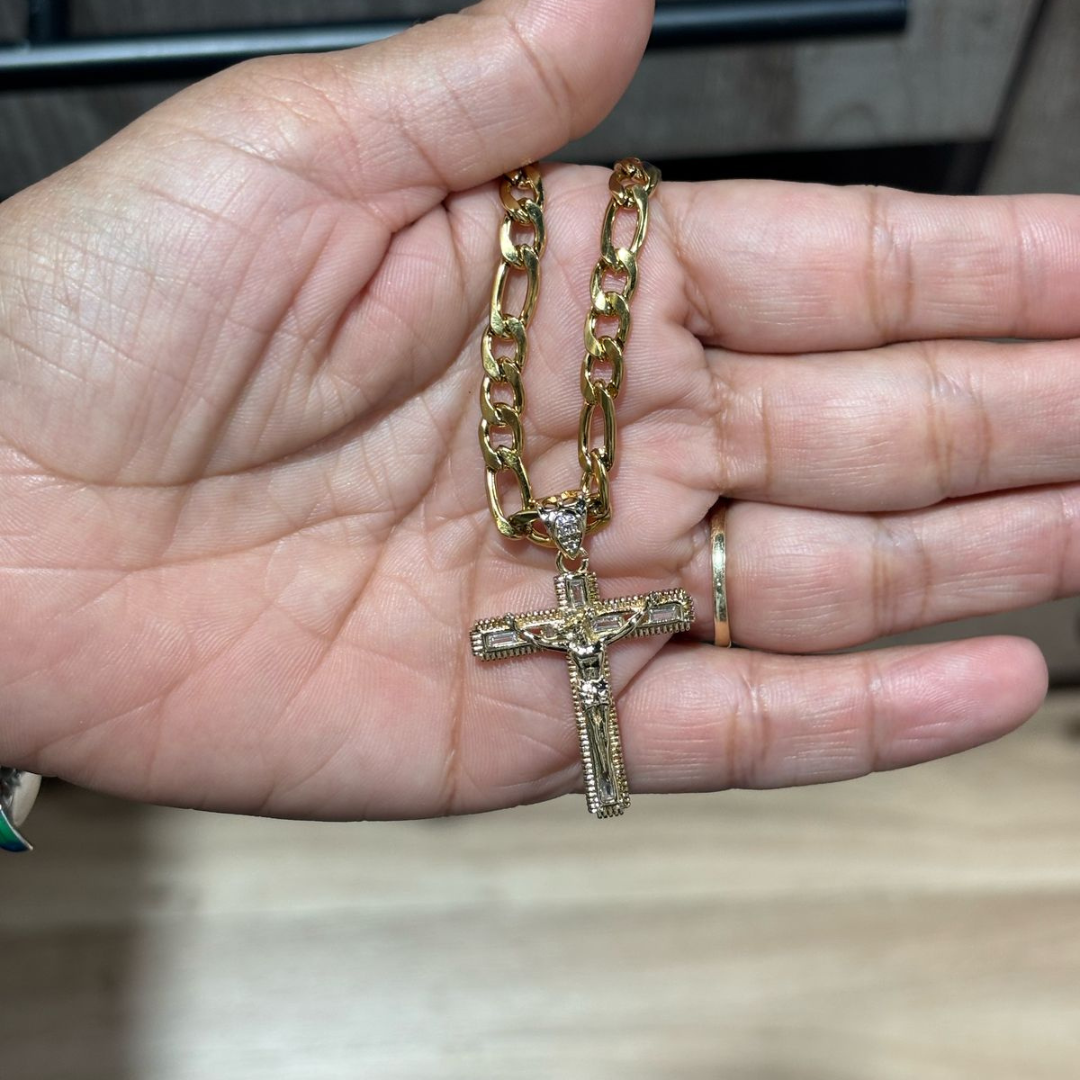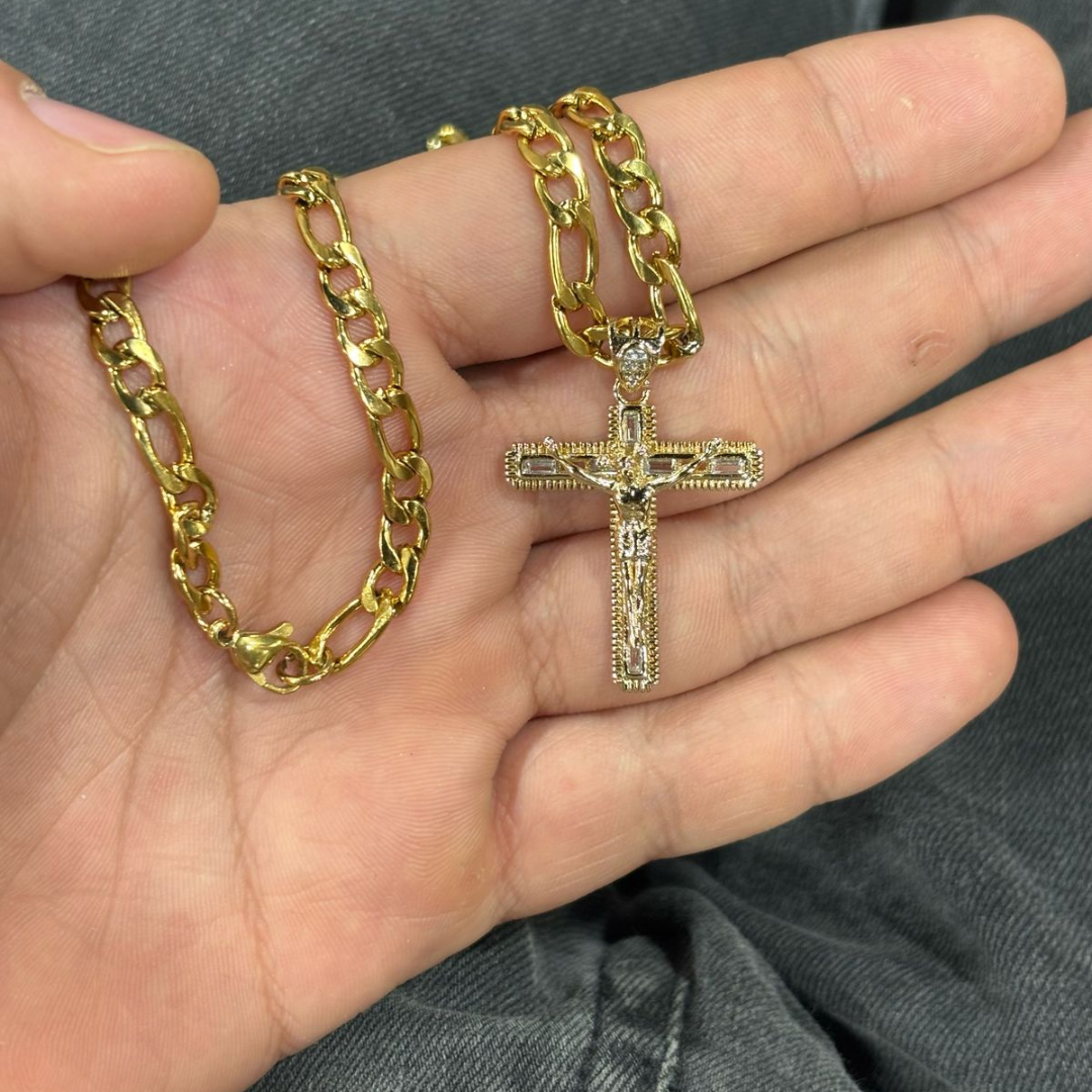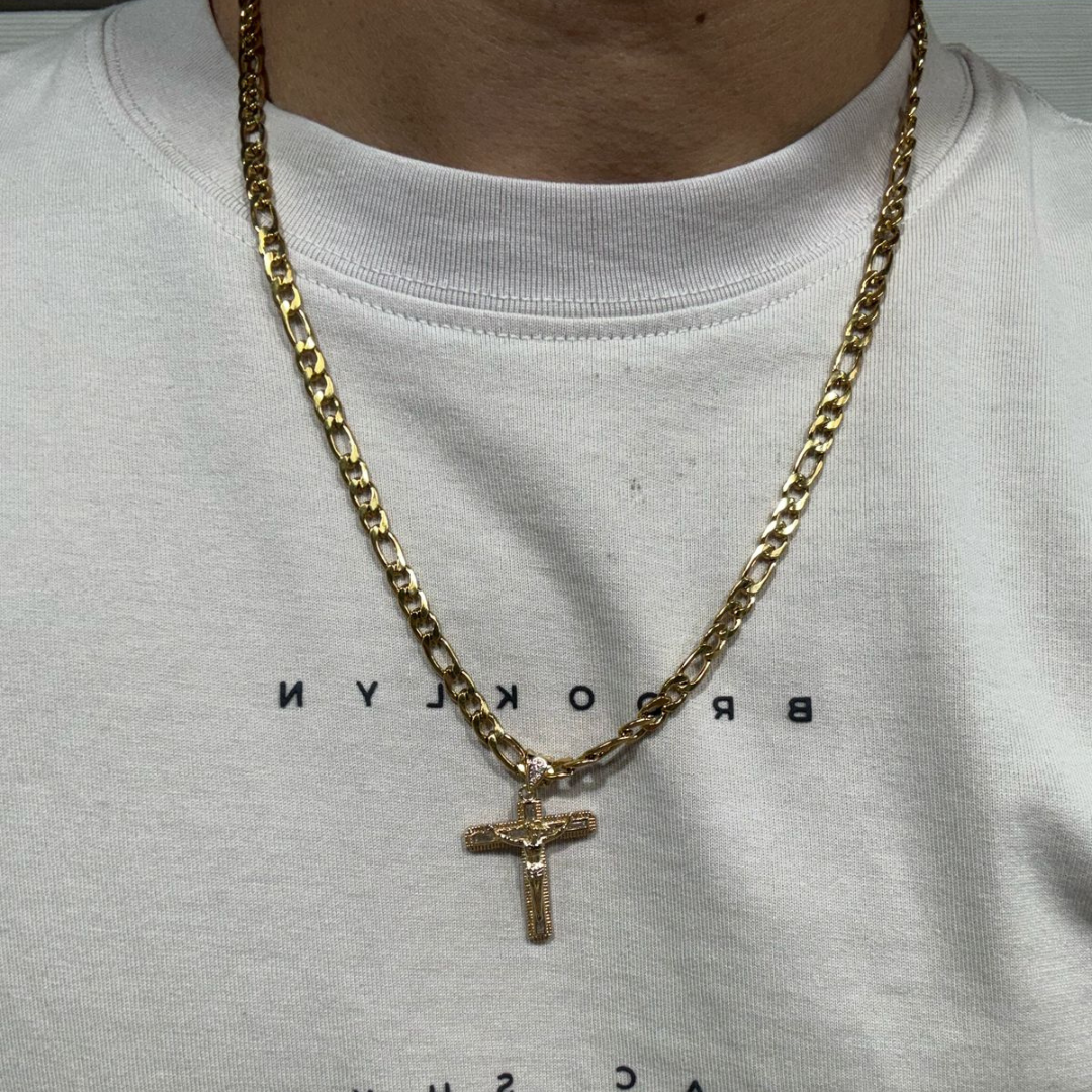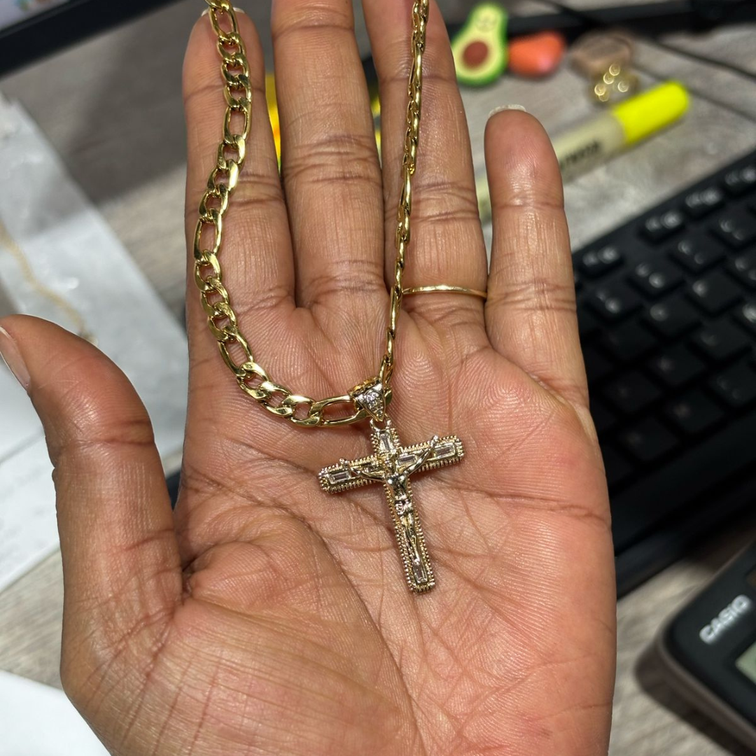 Incluye la cadena tipo Cartier + dije cruz Jesús con piedras.