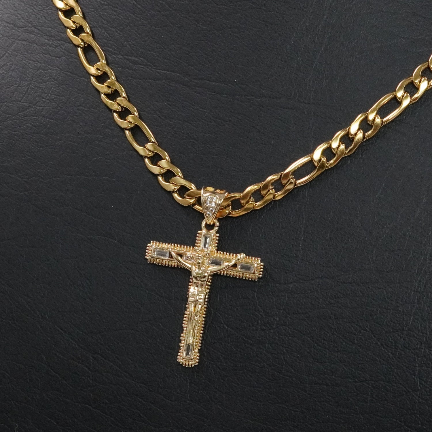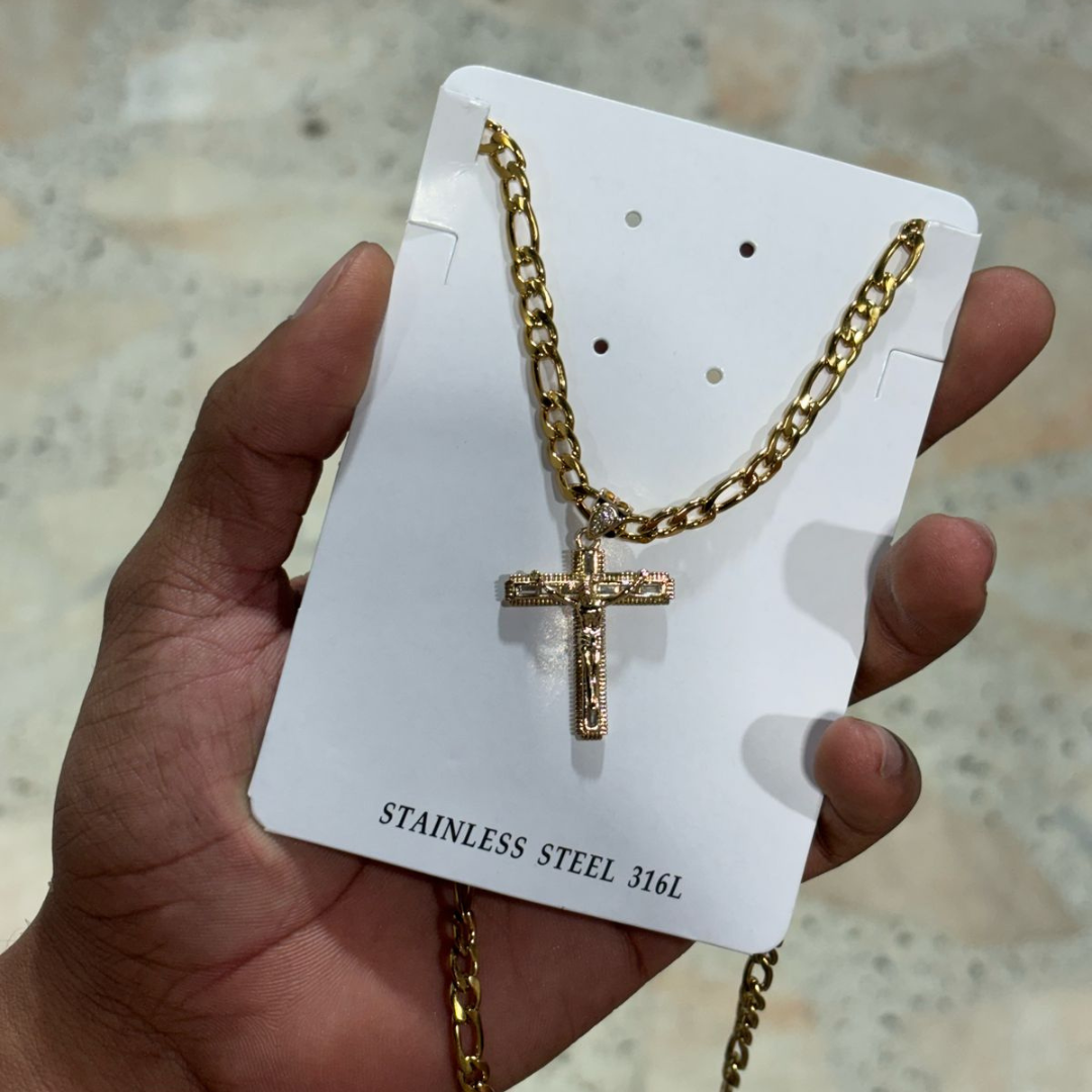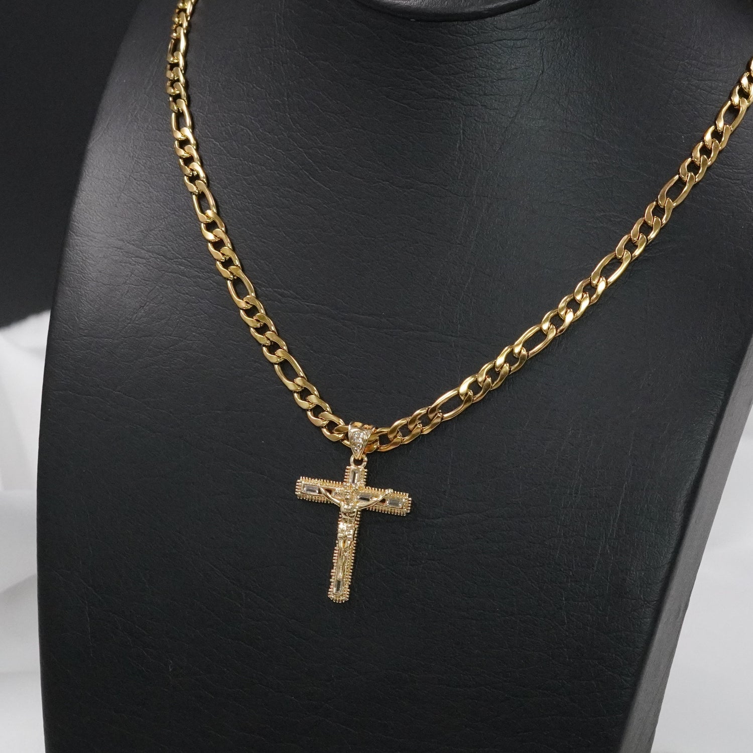 Incluye la cadena tipo Cartier + dije cruz Jesús con piedras.