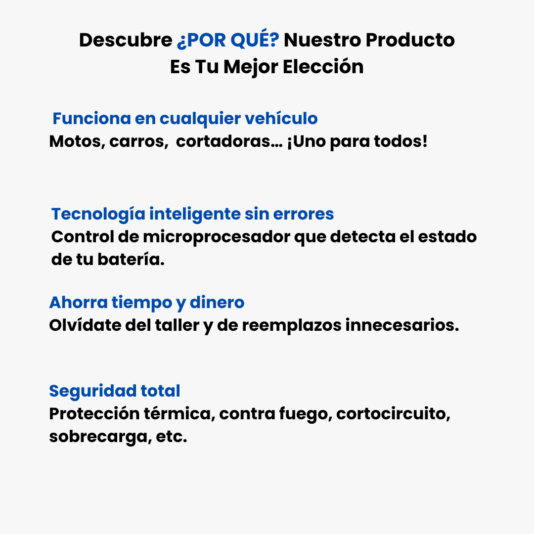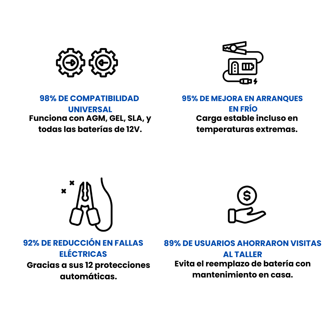 Si valoras la seguridad y el rendimiento, no busques más. Únete a miles de conductores que confían en el Cargador de Batería 12V™ para mantener su batería fuerte y lista en todo momento.