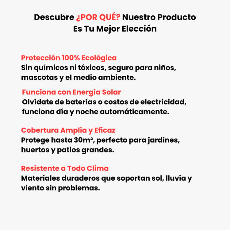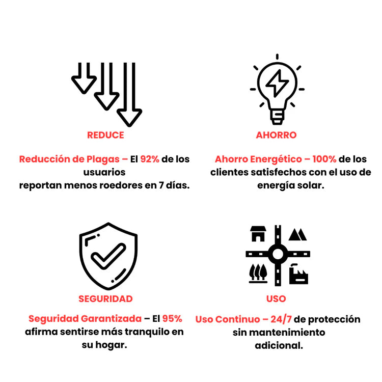 ECO REPEL® es la solución definitiva para proteger tu hogar sin químicos ni trampas peligrosas. Con tecnología de ultrasonido y energía solar, garantiza un ambiente seguro y libre de plagas.