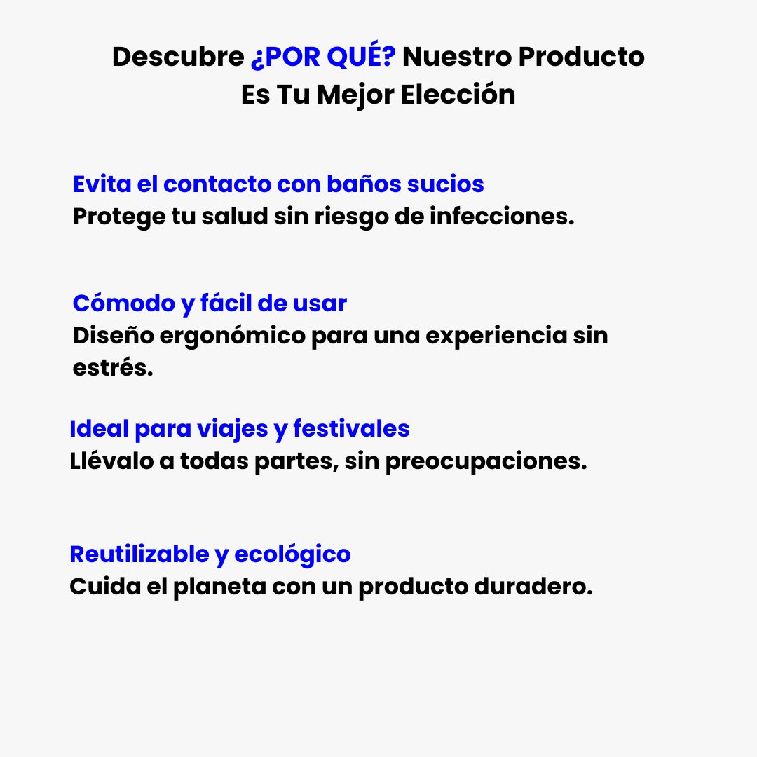 ¿Te ha pasado que necesitas ir al baño y solo encuentras baños asquerosos o largas filas? Con LadyGo™, orinar de pie es fácil, seguro e higiénico. Perfecto para viajes, festivales y embarazadas. ¡Tu comodidad es lo primero!