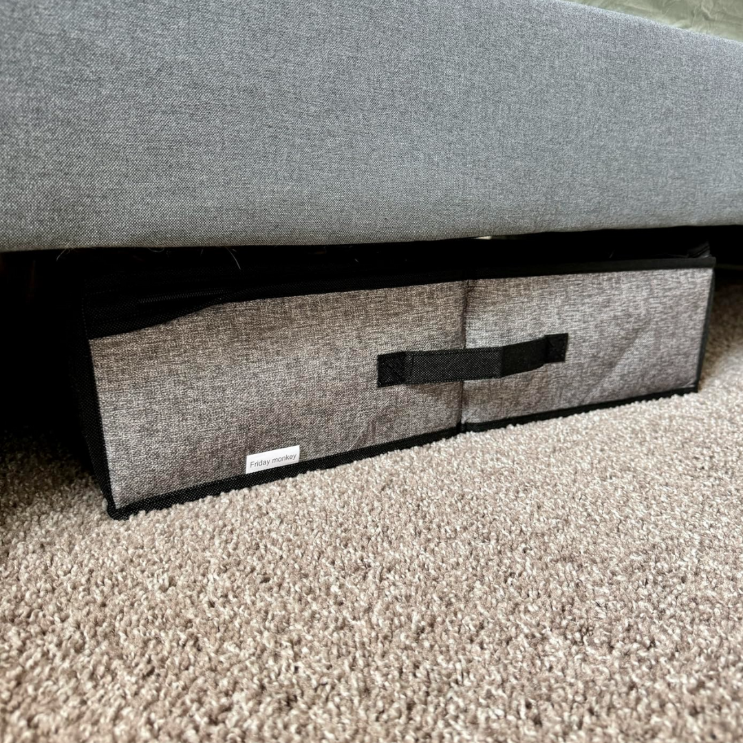 Lo metí bajo la cama y ¡uff! quedó todo organizadito, una maravilla.